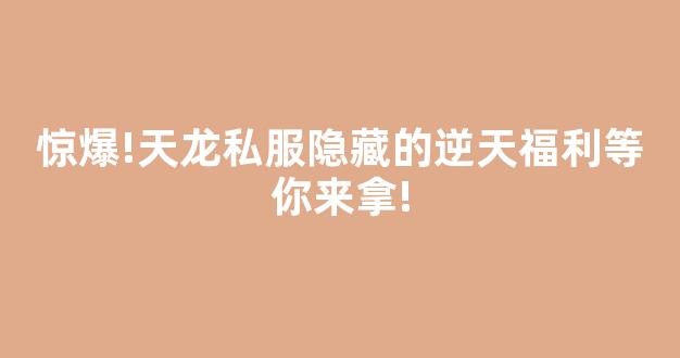 惊爆!天龙私服隐藏的逆天福利等你来拿!