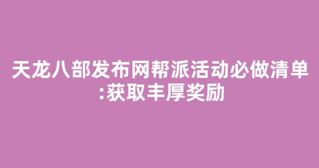 天龙八部发布网帮派活动必做清单:获取丰厚奖励