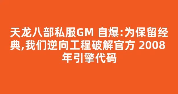 天龙八部私服GM 自爆:为保留经典,我们逆向工程破解官方 2008 年引擎代码