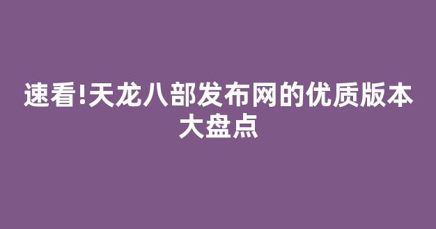 速看!天龙八部发布网的优质版本大盘点