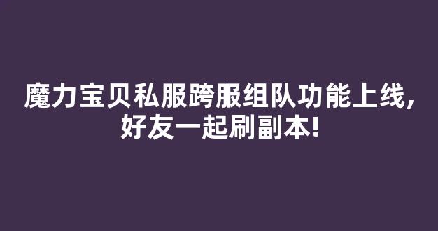 魔力宝贝私服跨服组队功能上线,好友一起刷副本!