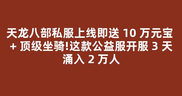 天龙八部私服上线即送 10 万元宝 + 顶级坐骑!这款公益服开服 3 天涌入 2 万人